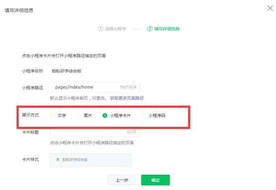 选择小程序展示方式(4选1)